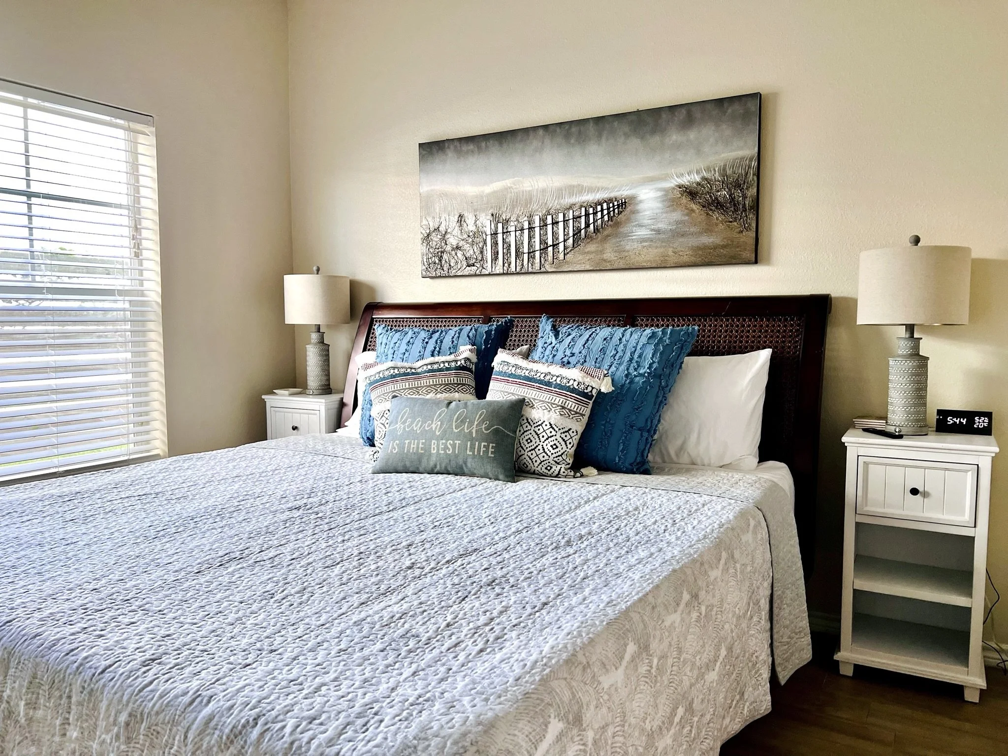 Sunshine & WhiskSea is located conveniently “in town” Port Aransas, in the lively Golf Cart Zone. We are on the beachside of 11th Street, so it’s just a quick 10 minute walk or 3 minute ride on the golf cart before your toes hit the sand. There are no streets to cross in between!